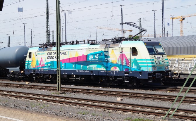 Bild unten: Die bunte 186 252-3 von Lineas wartet in Aachen auf Weiterfahrt. copyright: J.Franke