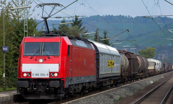 Im Jahr 2014 rollte die 186 334-9 mit einem gemischten Güterzug durch Himmelstadt. copyright: Marco Löffler