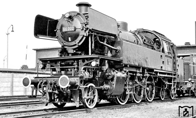 Bild oben: Die "Breitseite" der 66 002 1958 in Frankfurt-Griesheim. © Kurt Eckert / Slg. Eisenbahnstiftung