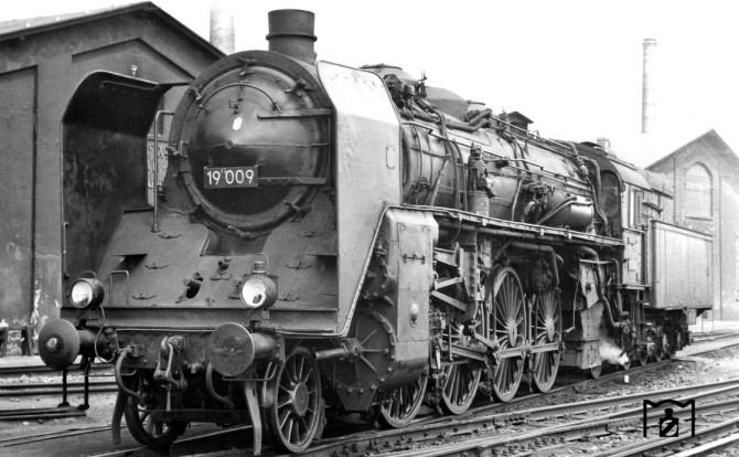 Oben: Die 19 009 steht 1957 zum Wenden im Bw Zwickau. © Gerhard Illner / Slg. Eisenbahnstiftung