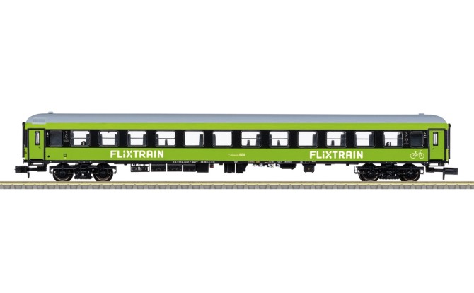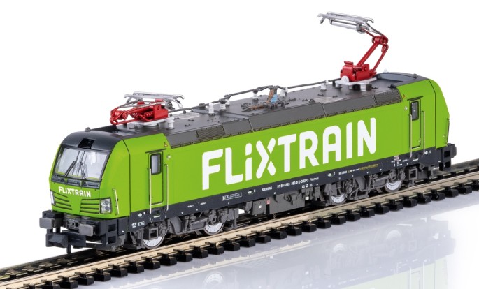 Gezogen von einer Siemens Vectron Lokomotive der Baureihe 193 von ELL rollen die grünen FLIXTRAIN Züge jetzt auch übers Spur N Gleis. Das Basis Set Art. 15462 enthält dabei 3 Wagen der 2. Klasse. Dieses Set kann mit dem einzelnen Wagen Art. 15797 beliebig oft ergänzt werden. Alle Wagen sind für den nachträglichen Einbau der Innenbeleuchtung (Art. 66616) vorbereitet. Die Lokomotive ist mit einem Digitaldecoder (DCC und mfx) und zahlreichen Licht- und Soundfunktionen ausgestattet.